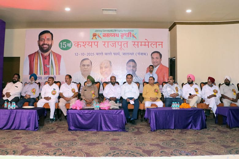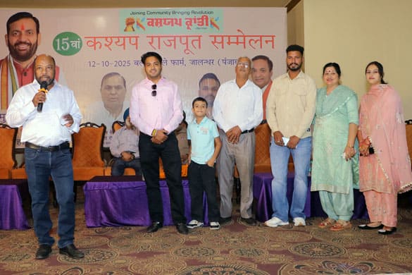 जालन्धर, 12-10-2025 (गुरिन्द्र कश्यप ) – देश-विदेश में रहने वाले कश्यप राजपूत समाज के अच्छे सूझवान, पढ़े-लिखे, अच्छे बिजनस करने वाले, अच्छे अफसरों और समाज के बढिय़ा परिवारों को आपस में मिलाने और जान पहचान करवाने वाला 15वां परिवार सम्मेलन 12 अक्तूबर 2025 को जालन्धर शहर के बल्ले बल्ले फार्म में सफलतापूर्वक आयोजित किया गया। कश्यप क्रांति पत्रिका और कश्यप राजपूत वैबसाइट के मालिक नरेन्द्र कश्यप व मुख्य संपादक शीमती मीनाक्षी कश्यप की अध्यक्षता में आयोजित इस परिवार सम्मेलन में पंजाब, हरियाणा, दिल्ली, जम्मू-कश्मीर, और उत्तर प्रदेश से समाज के बहुत से परिवार शामिल हुए। सम्मेलन के अति वशिष्ट अतिथी हरियाणा के मुख्यमंत्री नायब सिंह सैनी के प्रतिनिधी महिन्द्र सिंह सैनी, मुख्य मेहमान आल इंडिया कश्यप राजपूत पंजाबी वैल्फेयर सोसायटी के राष्ट्रीय अध्यक्ष करनाल से अनूप भारद्वाज थे जबकि प्रधानगी नांगला हार्डवेयर स्टोर फगवाड़ा के मालिक अमरिन्द्र सिंह नांगला ने की।