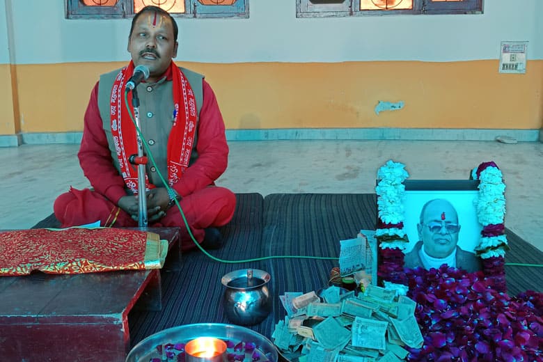 गरुड़ पुराण का पाठ करते हुए पंडित जी