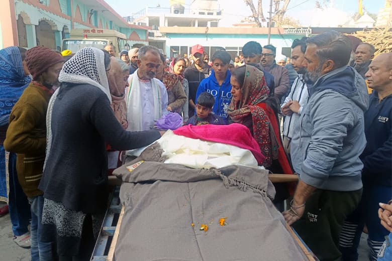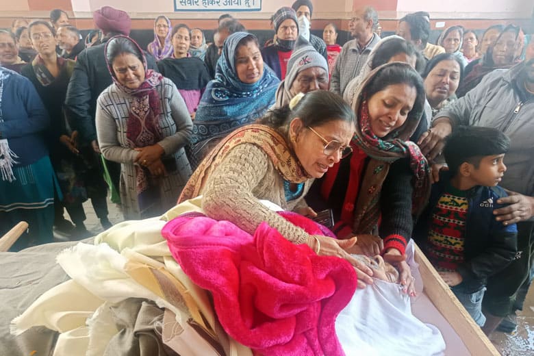 परिवार के सदस्य अंतिम दर्शन करते हुए
